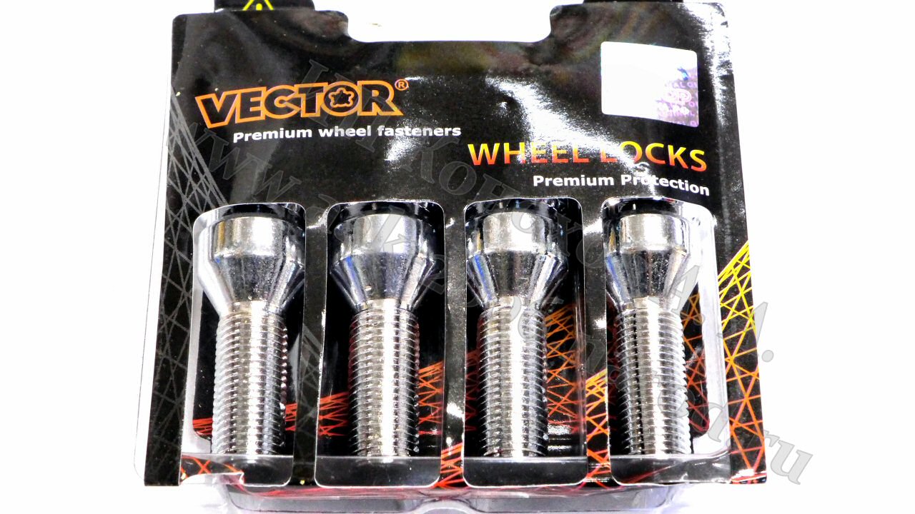 Болты секретные колеса М12*1,5*30мм хром,сфера,2-ключа 385130 Вектор