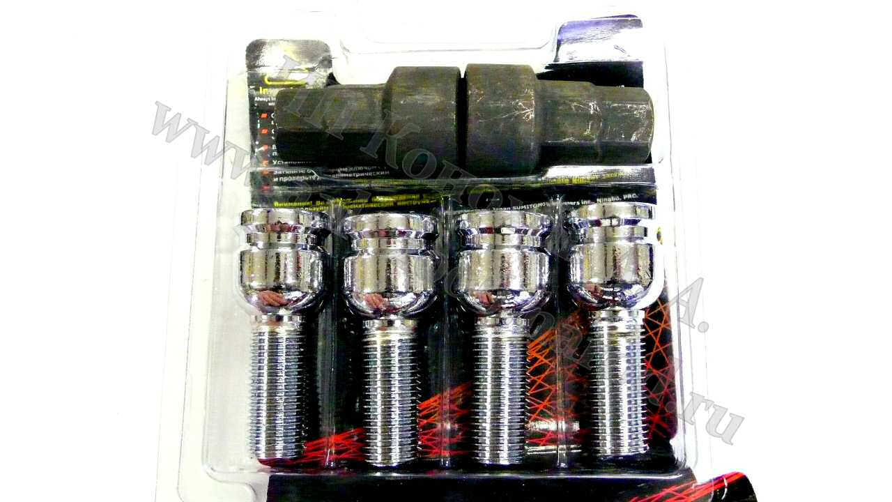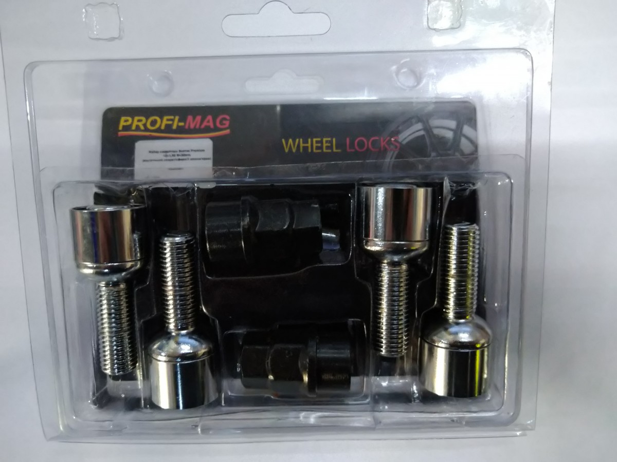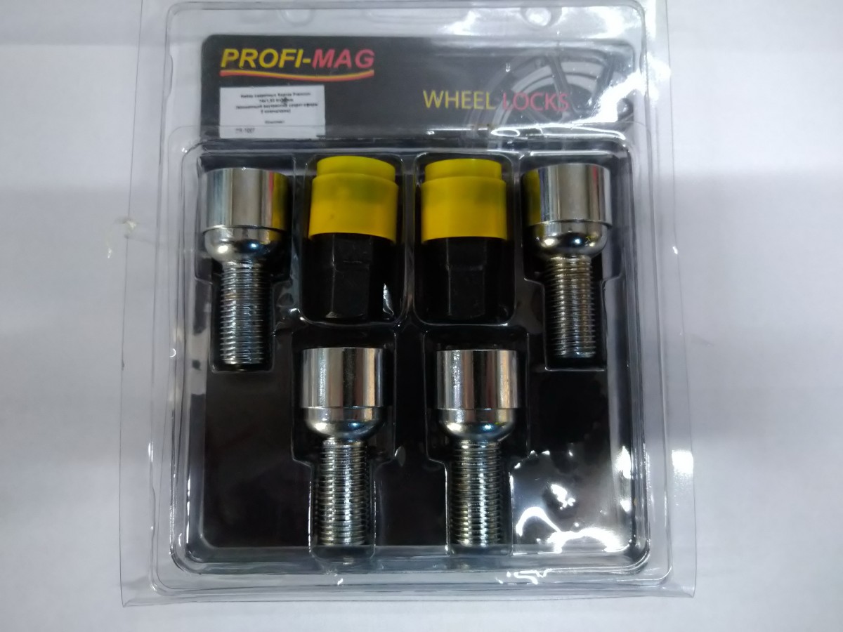 Болты секретные колеса М14*1,5*28мм хром,сфера,2-ключа (PROFI) PR-1007