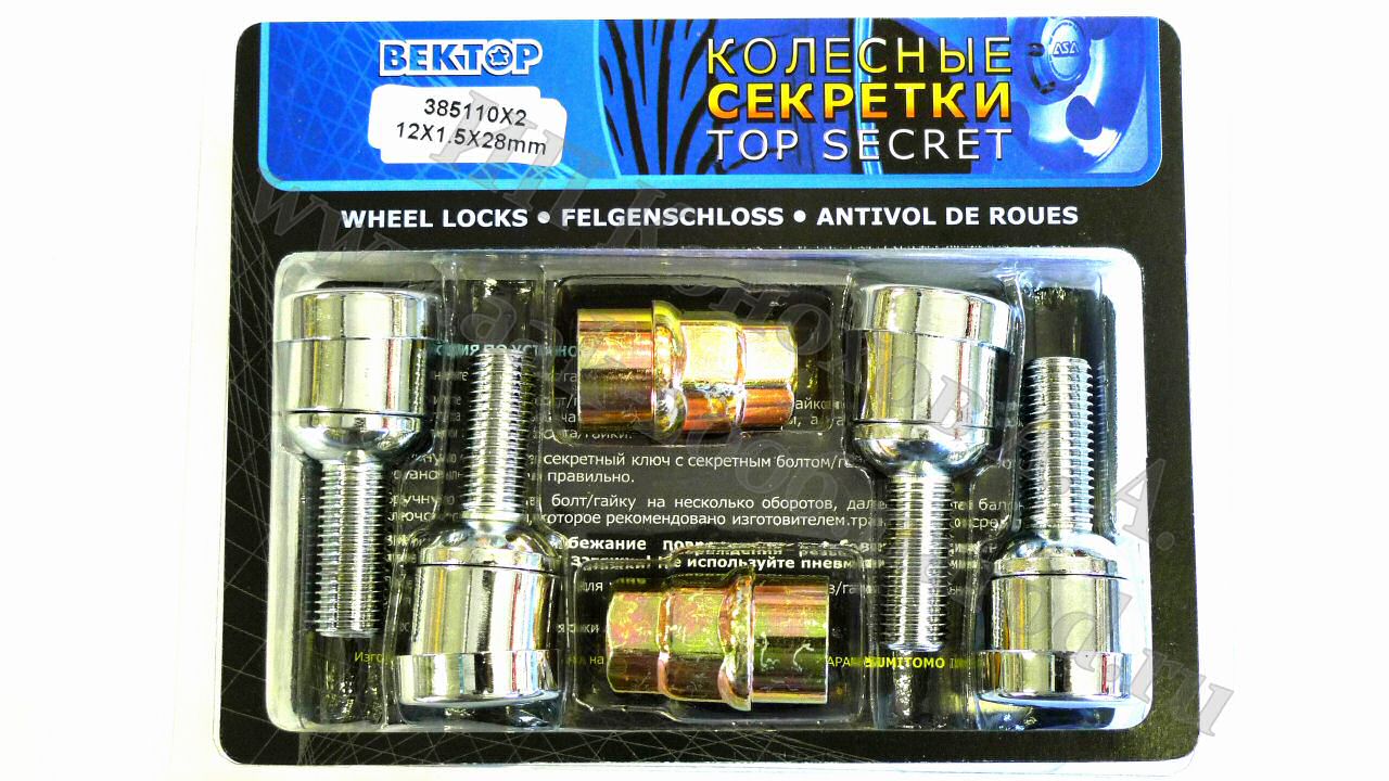 Болты секретные колеса М12*1,5*28мм 385110X2 (Вектор)Cr.Сфера